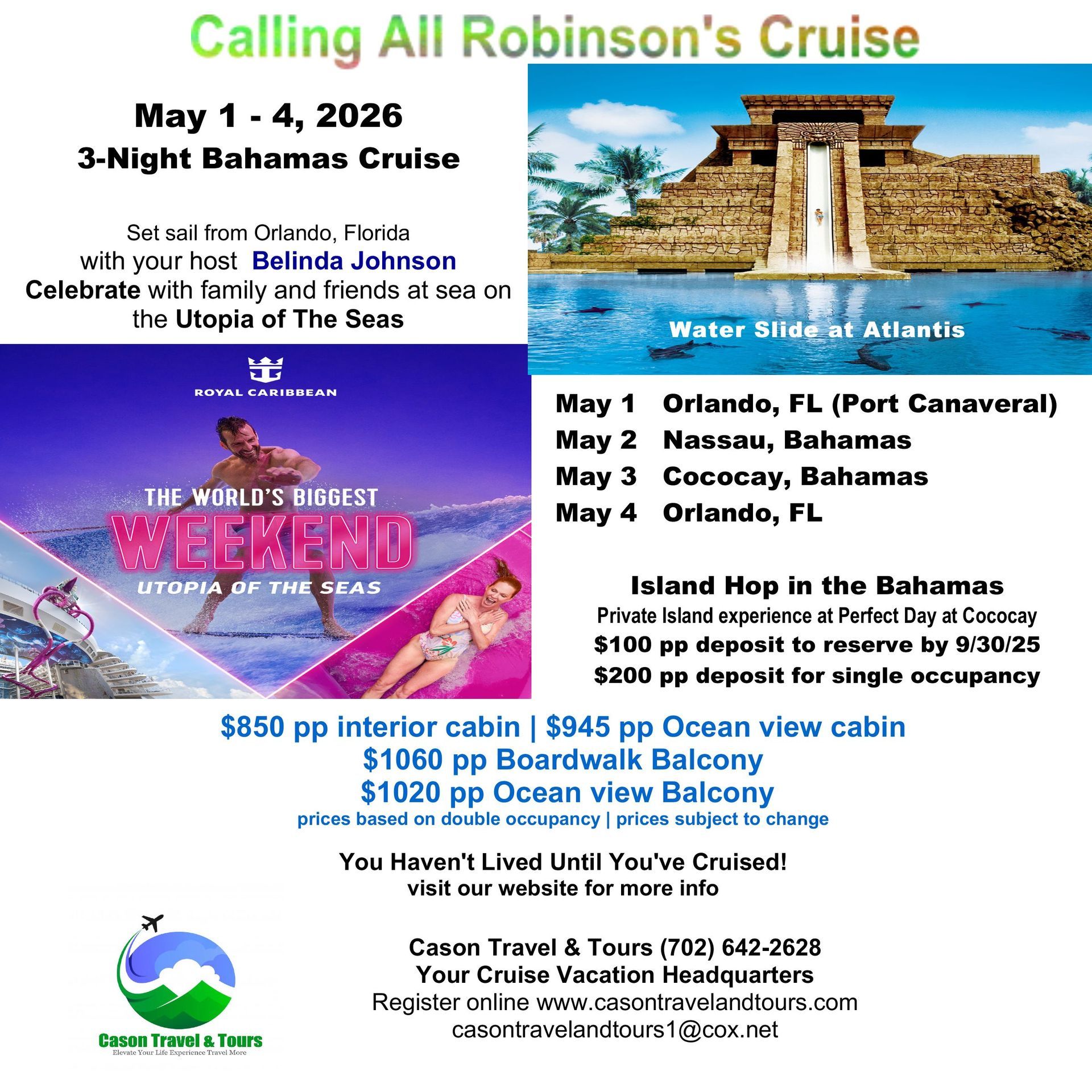 Reserve your fun cruise vacation below with a $100 pp deposit by 9/30/25